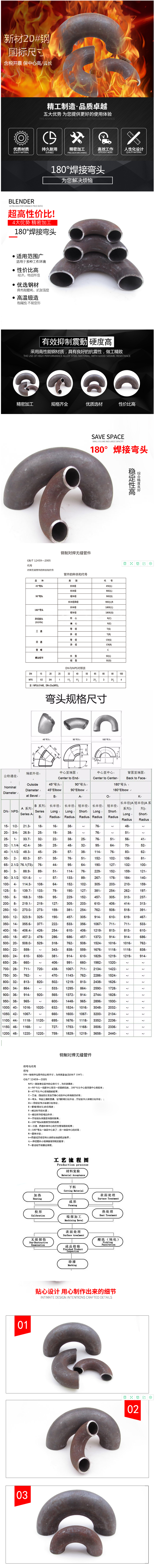 無縫碳鋼180度焊接彎頭1.5倍長半徑衝壓彎頭180°U型彎