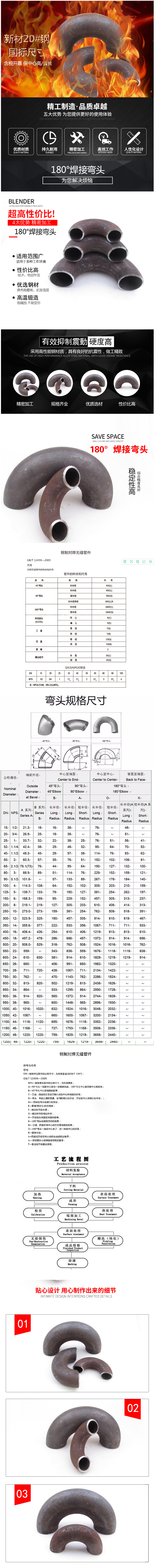 無縫碳鋼180度焊接彎頭1倍長半徑衝壓彎頭180°U型彎