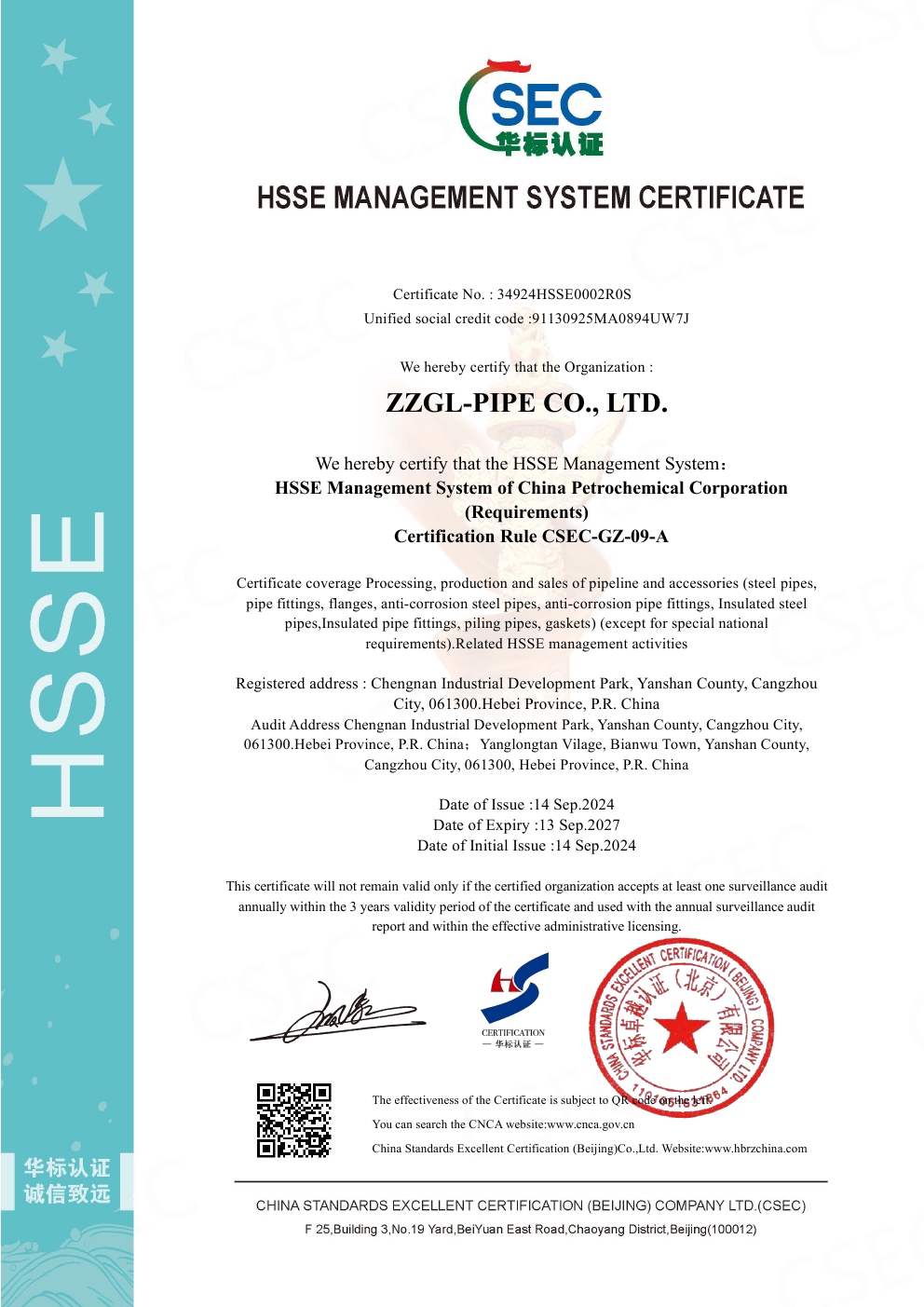 防腐鋼管HSSE管理體係認證廠家