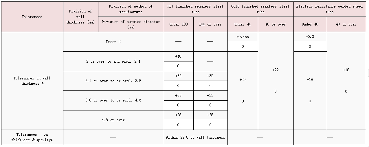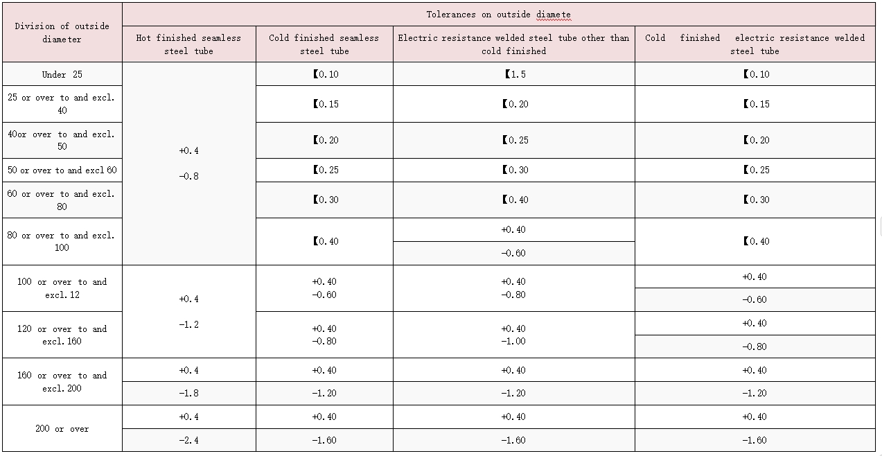 JIS G3461 Carbon Steel Pipes Dimensions Tolerance JIS G3461碳鋼管尺寸公差