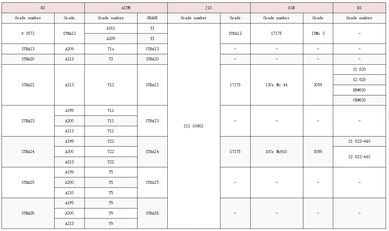 Equivalent steel grade of JIS G3462 JIS G3462的等效鋼級